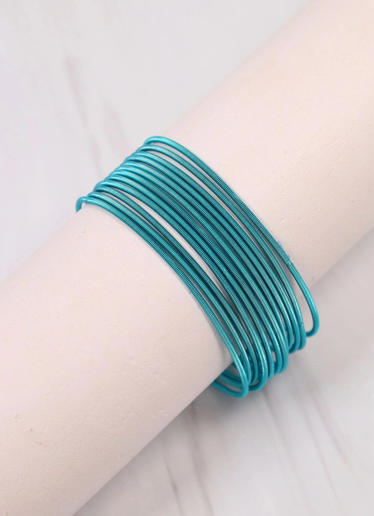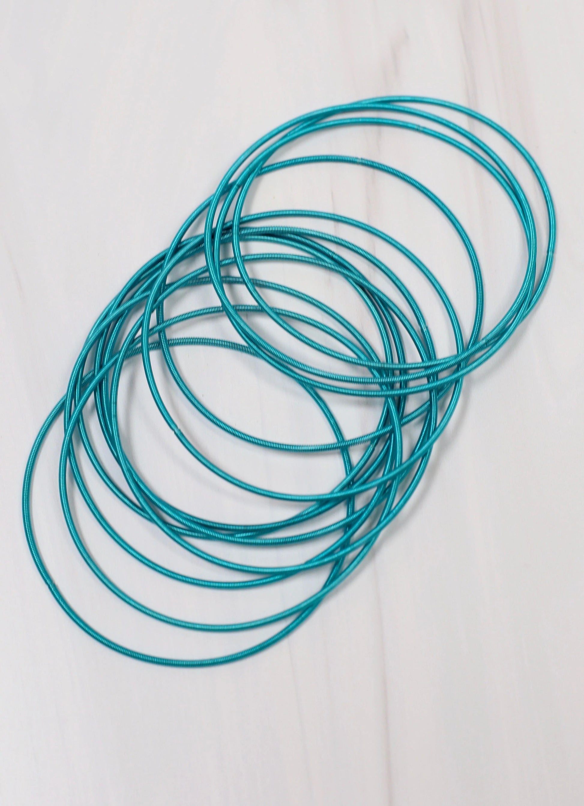 This bracelet set is so on trend! It has 12 individual pieces that can be worn all together, a few at a time, or mixed in with your own pieces to create a fun stack. They stretch to fit most wrists.