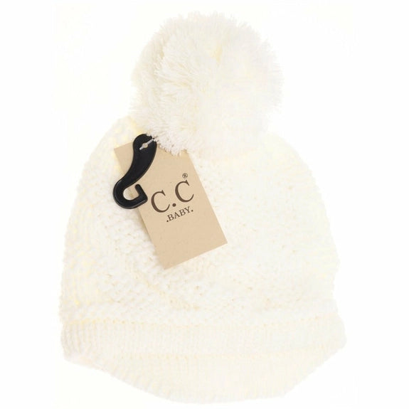 C.C Baby Brim Beanie Hat with Pom Ivory