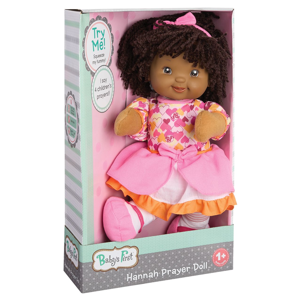 Meet Hannah, the plush doll that brings comfort and joy to your little one's bedtime routine! At 13.5 inches tall, Hannah is the perfect cuddle companion. Squeeze her tummy, and she'll recite four delightful children's prayers, creating a soothing and interactive experience. Designed for children ages 1 year and older, Hannah is crafted with baby-safe materials and is machine washable, making her both child-friendly and mom-approved. This charming doll comes with 2x 1.5V batteries and detailed instructions, so she's ready to play and pray right out of the box. Add Hannah to your child's collection and watch her become a cherished friend!