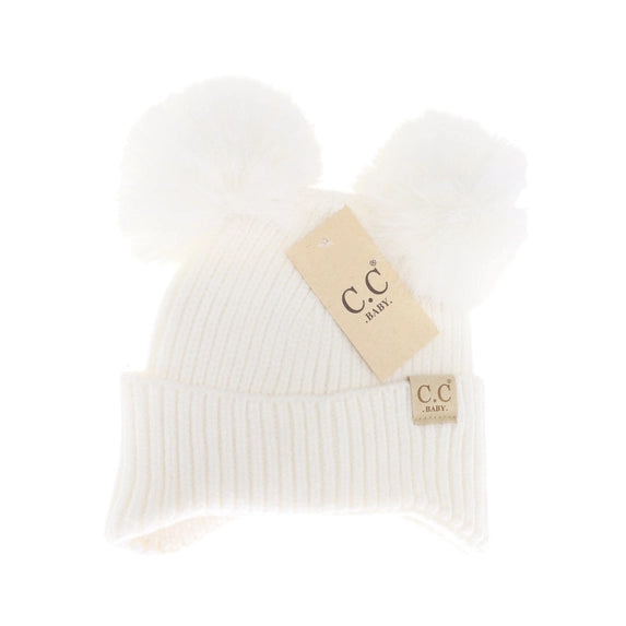 C.C Baby Ear Flap Double Pom Beanie Ivory