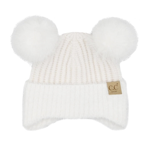 This beanie is the perfect accessory for your precious little one! With double fur earflaps and cute pom poms, this beanie not only adds a touch of cuteness to any outfit, but also keeps those tiny ears warm and cozy. A must-have for any stylish baby!