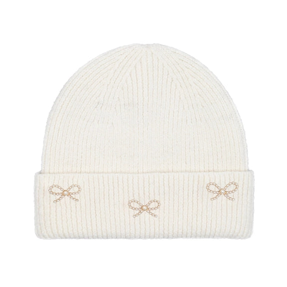 C.C Kids Pearl Bow Embellished Cuff Beanie Ivory