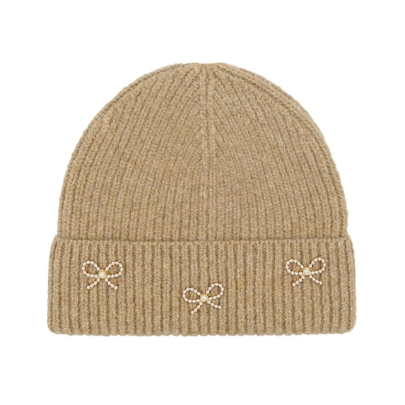 C.C Kids Pearl Bow Embellished Cuff Beanie Taupe