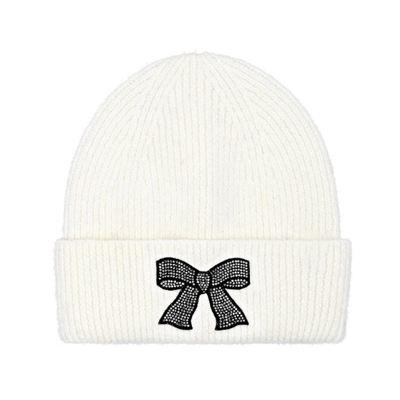 C.C Kids Rhinestone Ribbon Bow Embellishment Beanie Ivory
