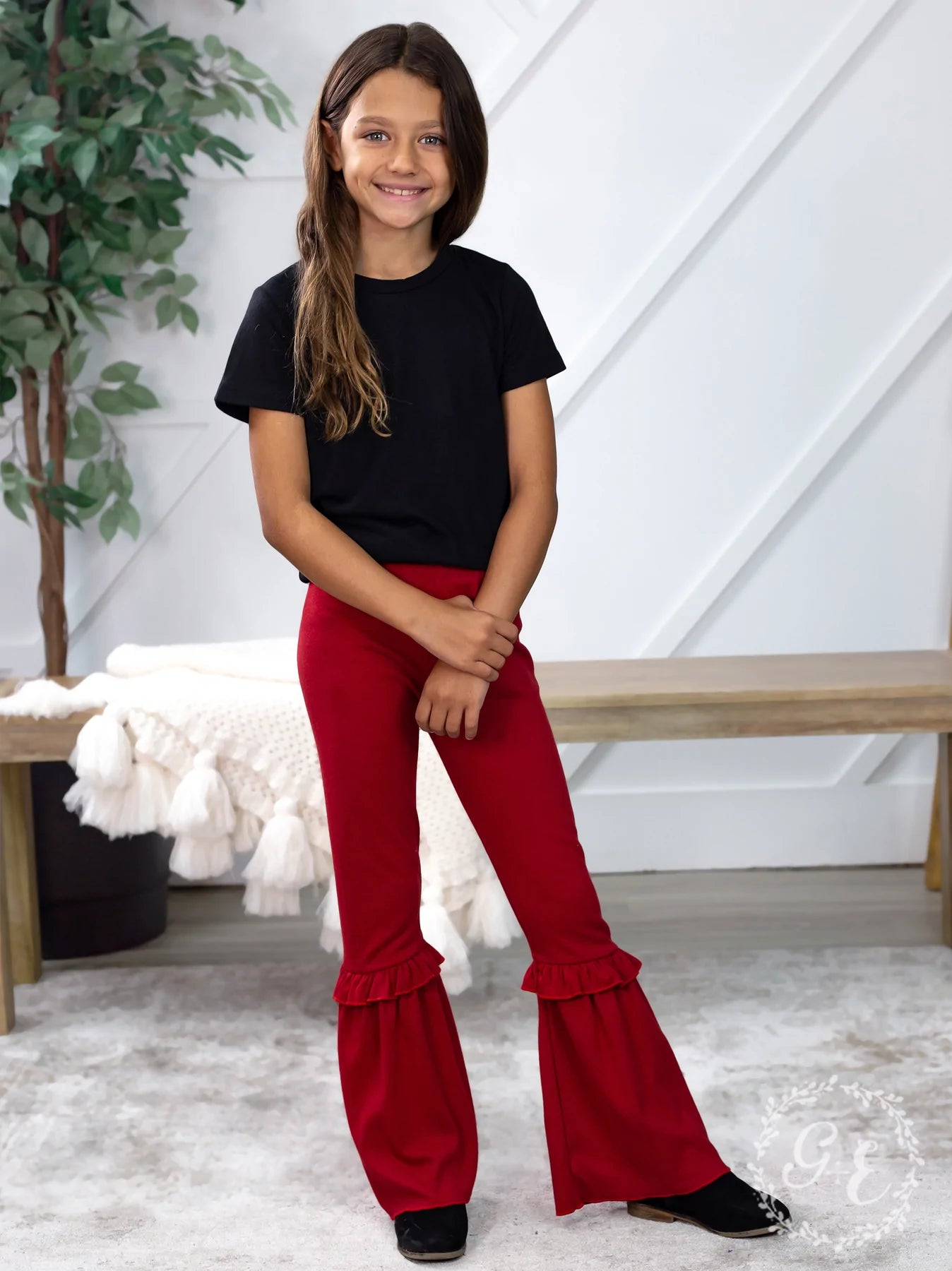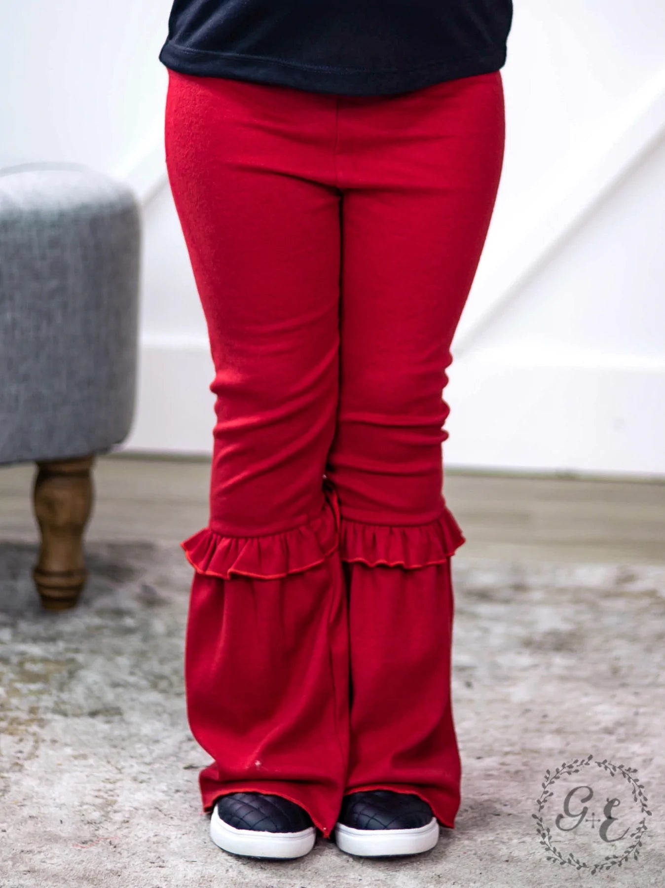 Girls Ruffle My Feathers Flare Pants with Ruffle, Red
