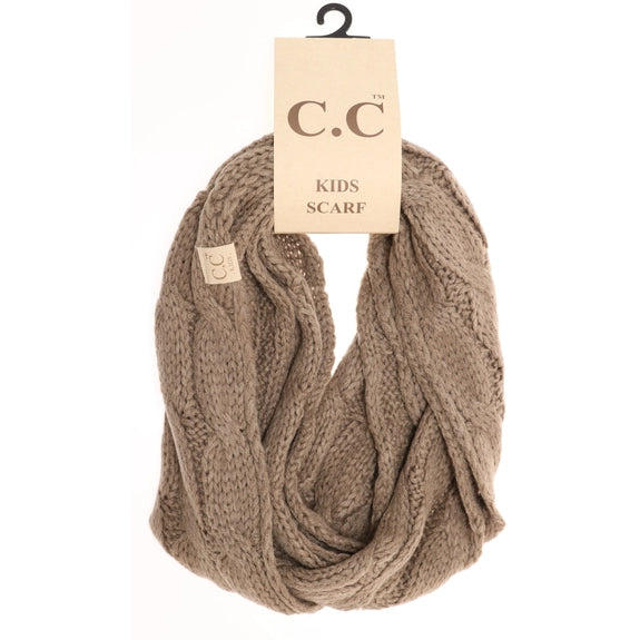 Kids Taupe Solid Cable Knit C.C Infinity Scarf