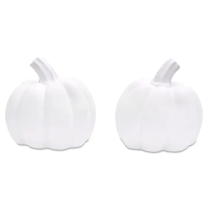 Includes 2 ceramic pumpkins, 5 paints, 1 paint brush, gems, stickers, and bows. Pumpkin size: 3 ¾ in x 3 ¼ in.