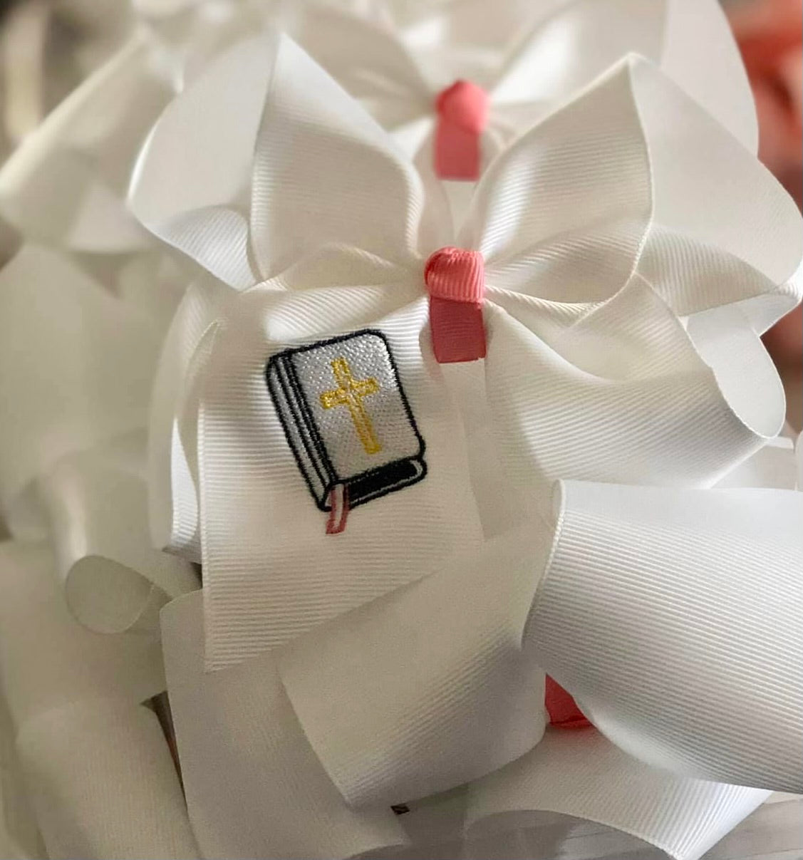 The 4” (2.25” Ribbon width) Bow is on an alligator clip.