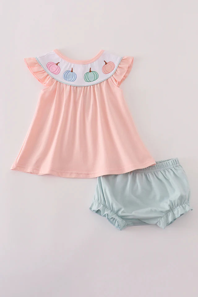 Girls Pumpkin Pink Embroidery Bloomer Set