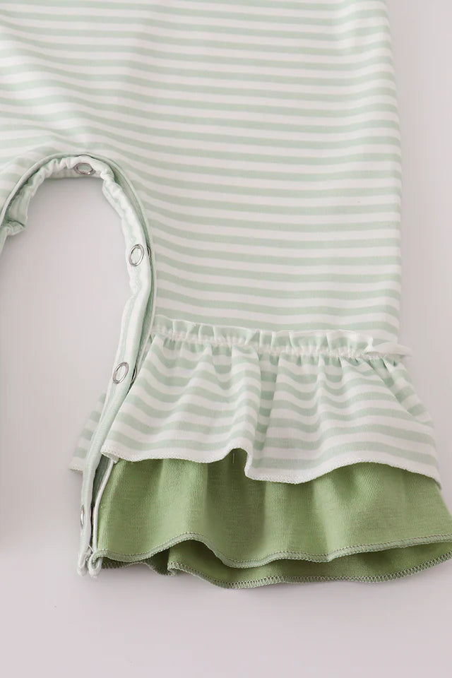 Girls Sage Turkey Applique StripeRuffle Romper