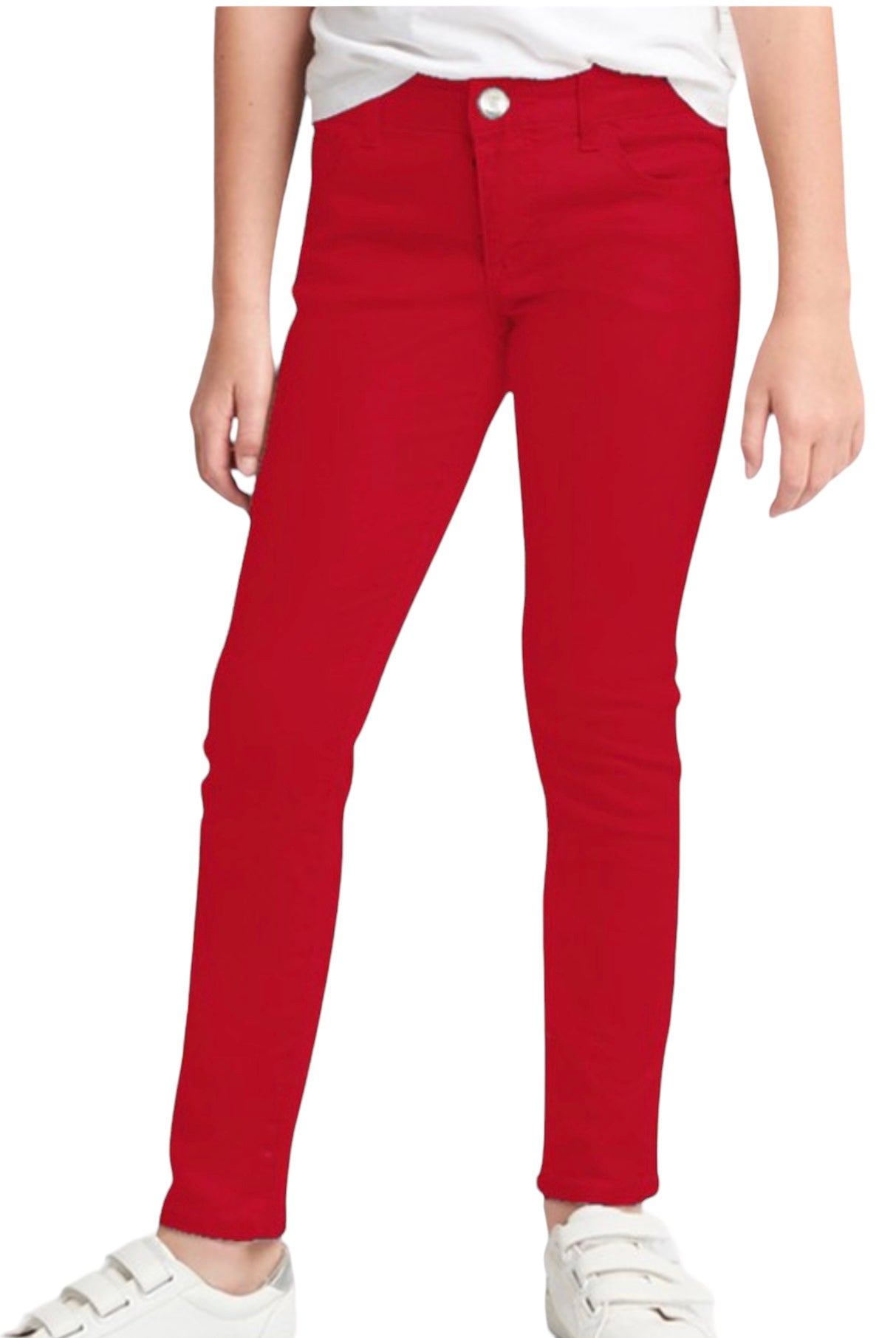 Girls Soft Twill Stretch Pants Regular Fit With Adjustable Waist Red
