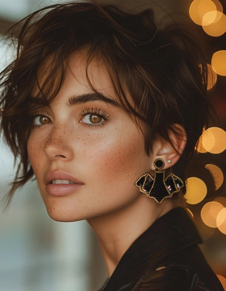 Spooky season is here to slay with colorful beaded earrings in six classic costume styles. Nickel-safe with a beaded stud post.