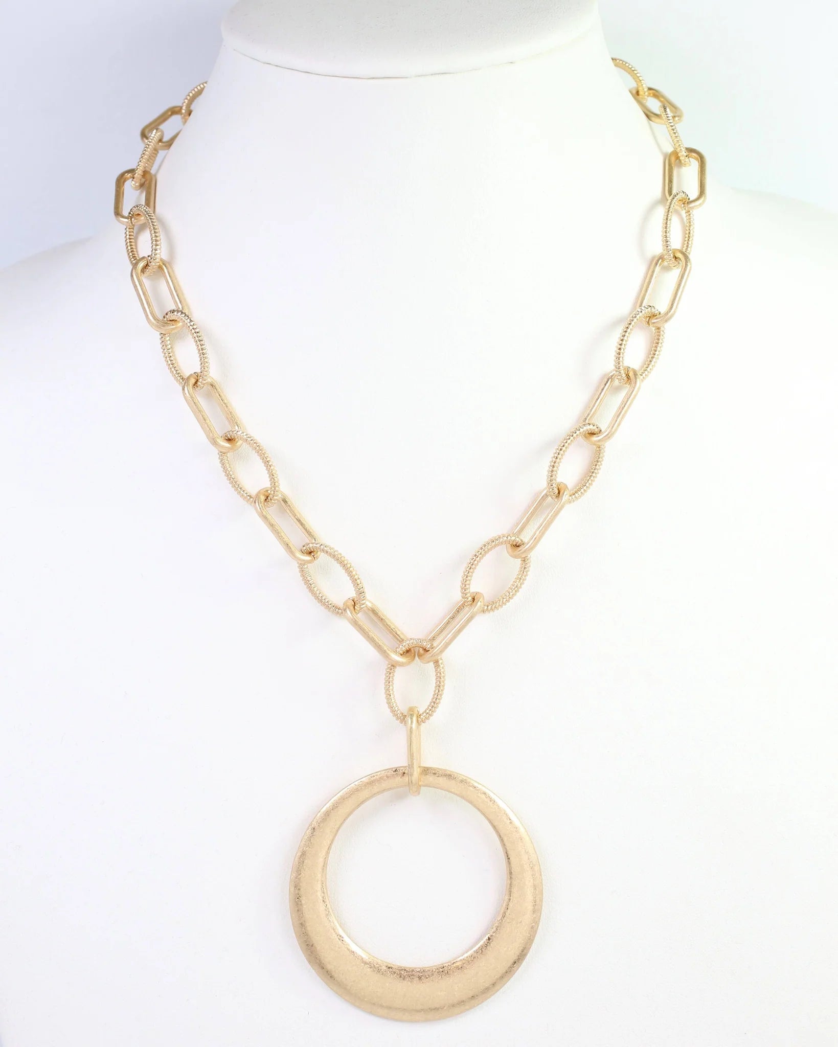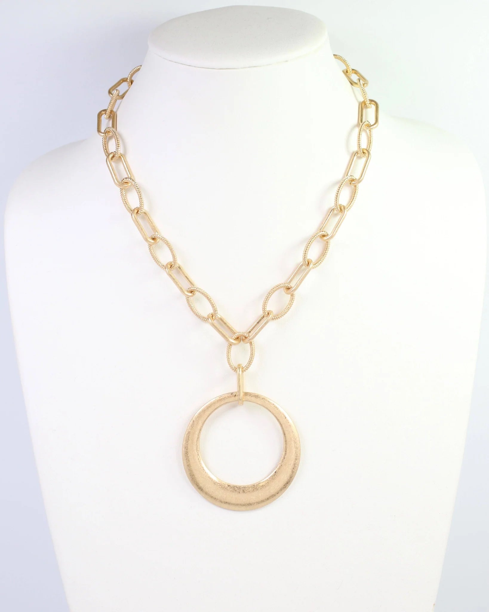 Caroline Hill Hyattsville Chain Necklace with Circle Pendant Worn Gold