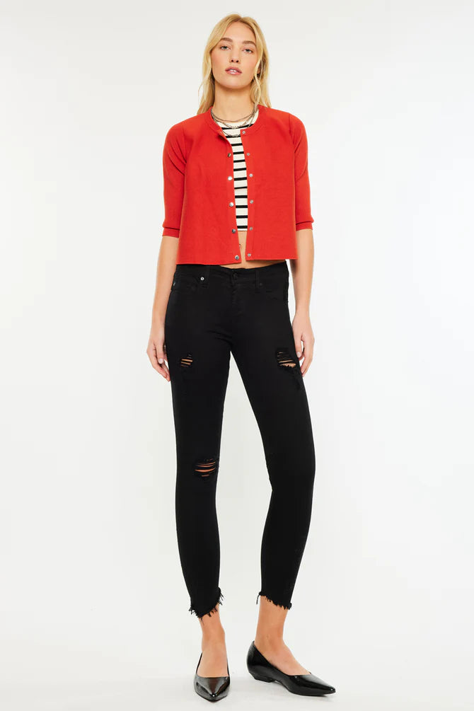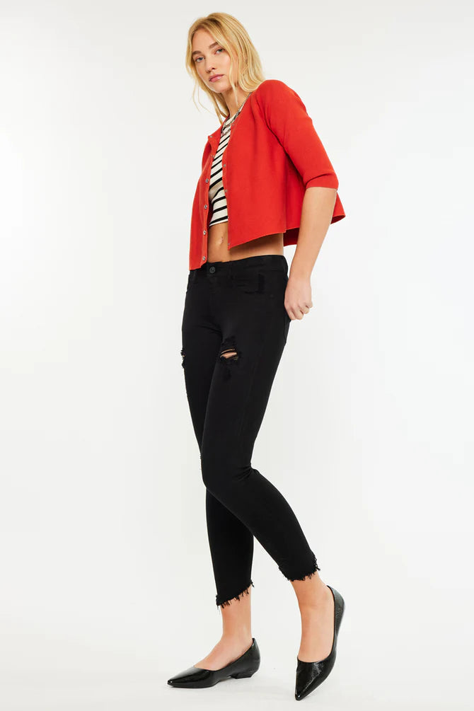 Kancan Womens Black Brianna Mid Rise Ankle Skinny Jeans