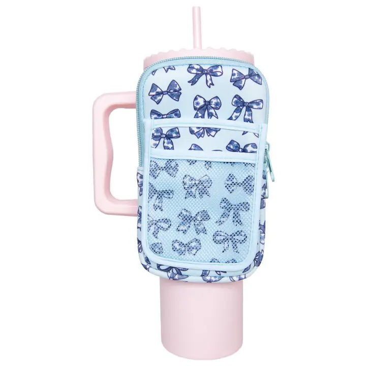 Embrace the delightful fusion of fashion and functionality with our Coquette Printed Wholesale Tumbler Zipper Bag, a must-have accessory for the modern woman on the move. Designed to effortlessly attach to tumblers via an adjustable velcro strap, this zipper bag offers a stylish and convenient solution to carry your essentials while enjoying a refreshing walk or keeping up with a busy schedule.