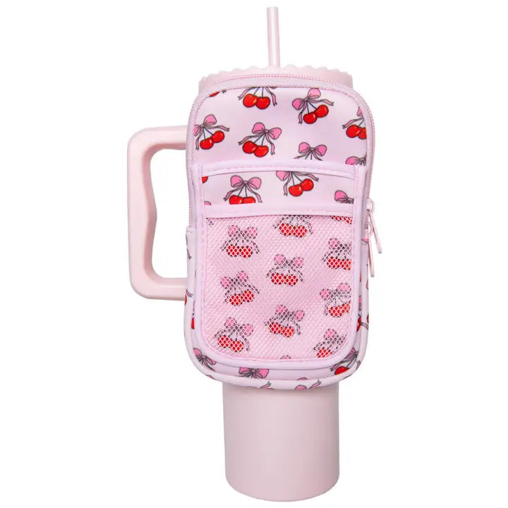 Katydid Light Pink Cherry Bow Tumbler Zipper Pouch