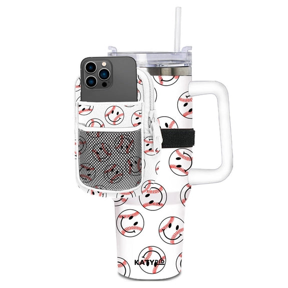 Katydid White Baseball Happy Face Tumbler Zipper Pouch