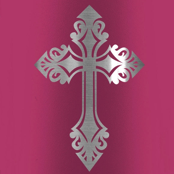 Share the love of jesus with this pretty “filigree cross” stainless-steel mug w/straw by Kerusso® in pink. A practical two-in-one lid allows you to sip your drink with the flip lid, or drink from the stainless-steel straw with silicone tip. Take this attractive mug along for hydration on the go, at the gym, or at the office.