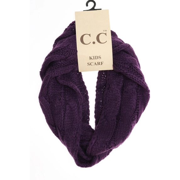 Kids Dark Purple Solid Cable Knit C.C Infinity Scarf