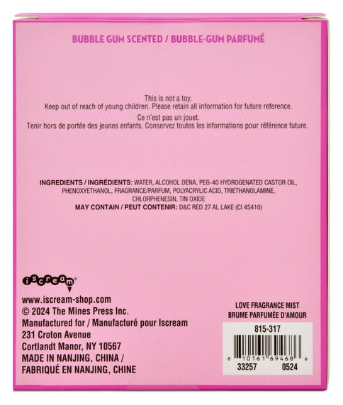 Add a playful touch to your fragrance collection with Love Fragrance Mist! This bubble gum scented perfume comes in an elegant bottle with a cute pink fuzzy charm attached. It's sure to make you smell and feel sweet (like bubble gum) all day long. Get ready to fall in love with this unique scent!