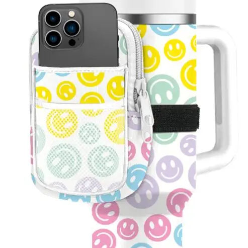Enhance your customers' tumbler experience with our Pastel Happy Face Tumbler Zipper Pouch. This charming accessory is designed to attach effortlessly to tumblers, providing a stylish and practical solution for carrying essentials such as phones, wallets, and keys during walks or outings. As a boutique owner, you'll love offering this trendy and functional product to your customers.
