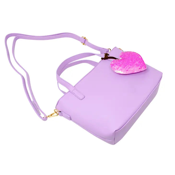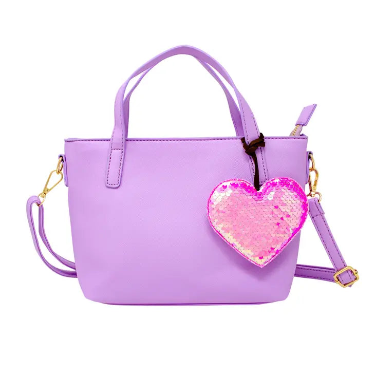 Large size leather tote bags for kids. This tote bag comes with a charm and matching shoulder strap. It features a pocket with zipper inside and has a zipper on top to keep everything safe.