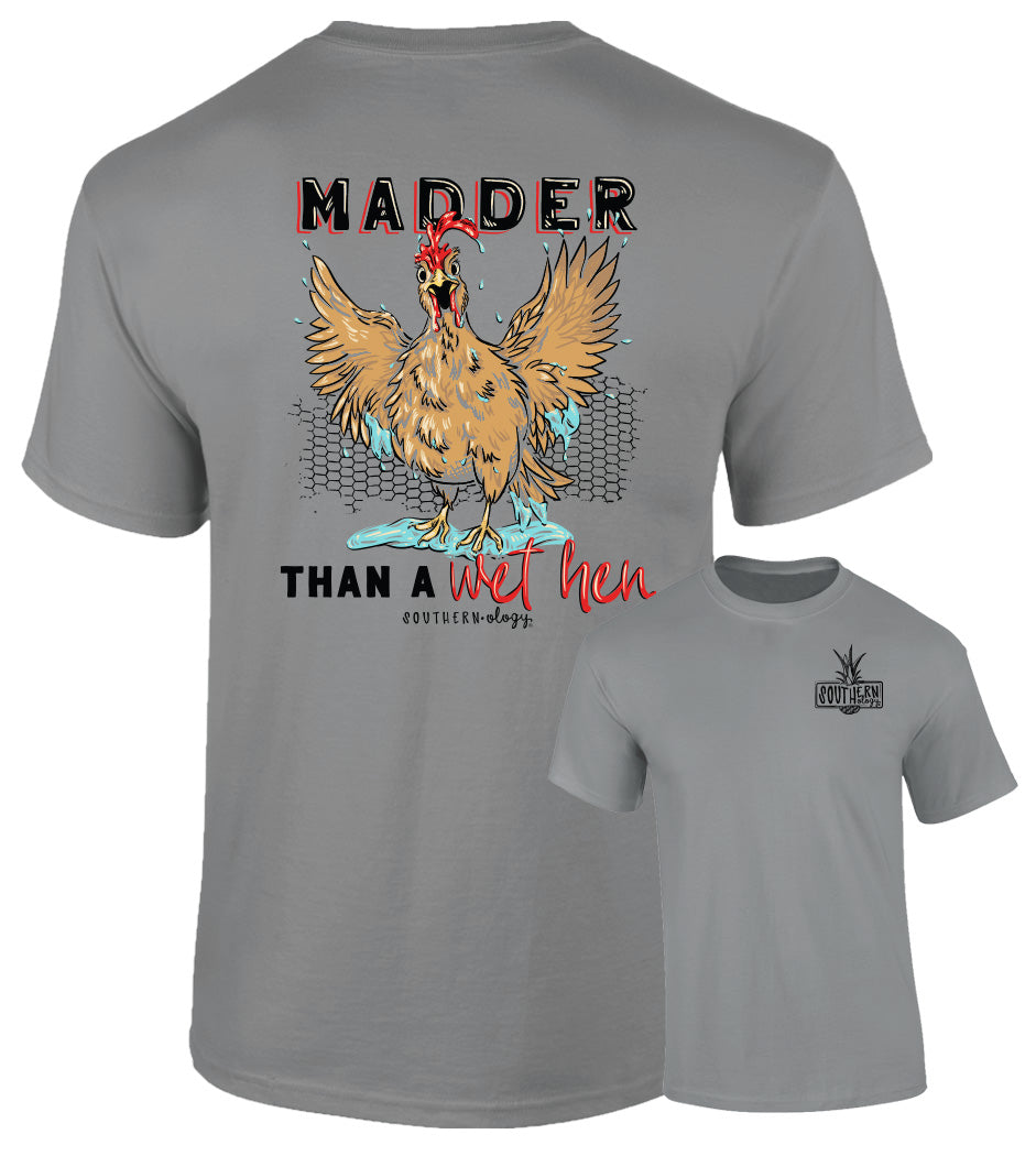 Feathers ruffled and sass on full display! Our Southernology® Madder than a Wet Hen tee is perfect for those days when you're not in the mood for nonsense. This Southern saying brings big attitude with a wink of humor—because sometimes, you just can't even. Printed on a Comfort Color grey short sleeve tee.