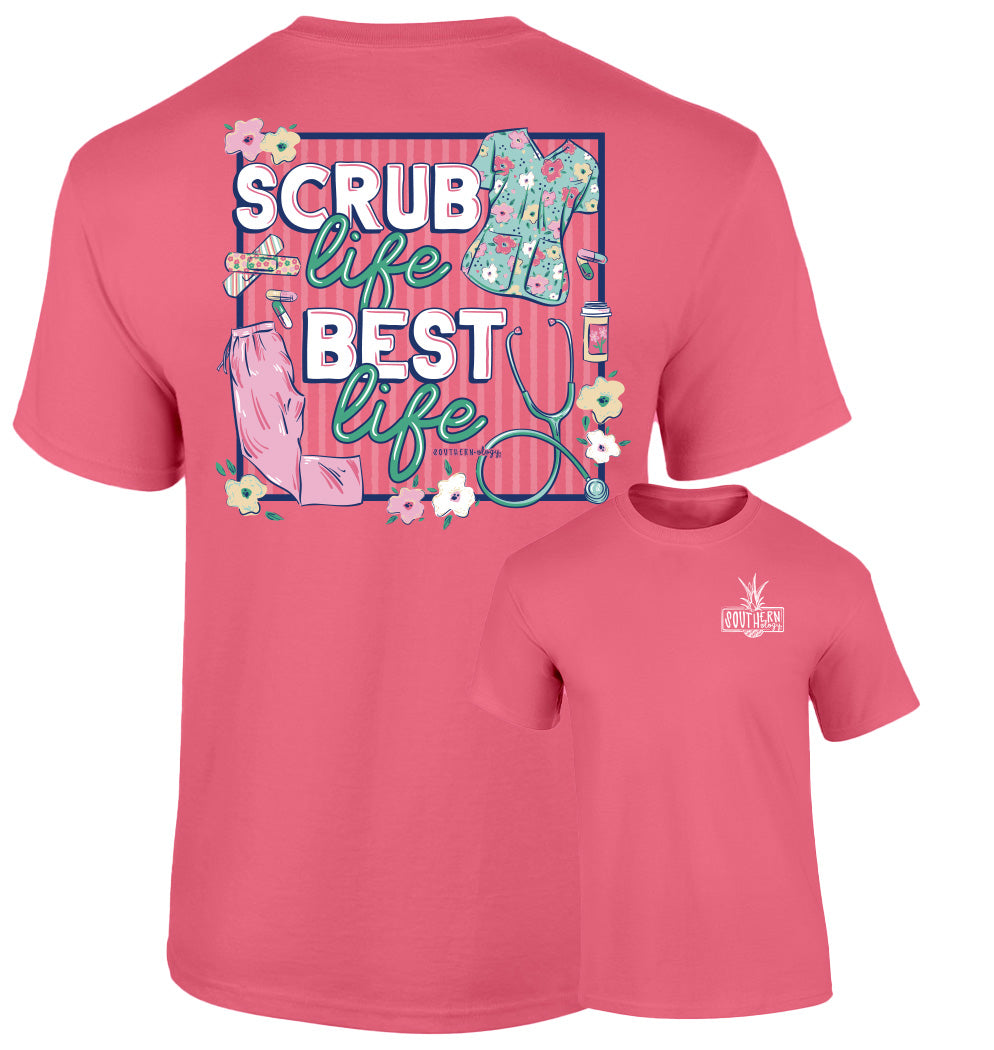 Long shifts, late nights, and caffeine-fueled days – welcome to the scrub life. The best life! This NEW Southernology® tee is a shoutout to the everyday heroes in scrubs who keep things moving, save lives, and somehow still manage to smile through it all. Printed on Comfort Color crunchberry t-shirt.