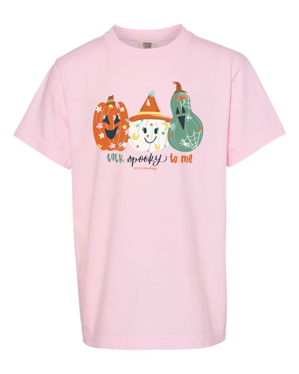 Let your spooky side shine and make your conversations turn delightfully eerie in our NEW Southernology® "talk spooky to me" tee. Printed on a blossom Comfort Color t-shirt.