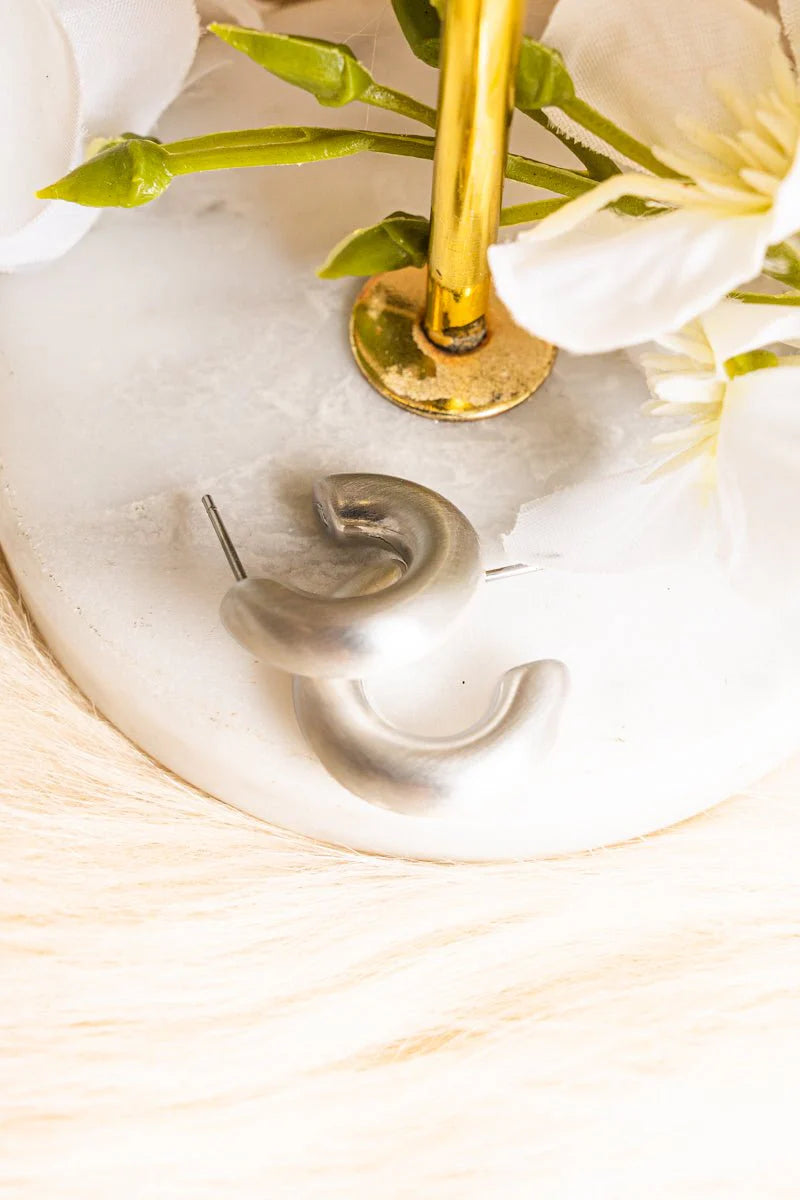 Timeless Style Matte Silvertone Puffy Hoop Earrings