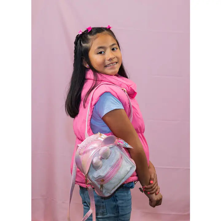 Our charming mini backpack is a delightful accessory designed to add a touch of fashion forward fun to your ensemble. Includes a sweet lip gloss accessory for a dash of glamour.