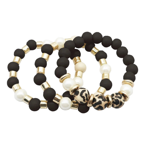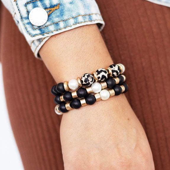 This bracelet stack will quickly become your go-to accessory, it features an eclectic set of bracelets that will perfectly pair with your favorite outfits.