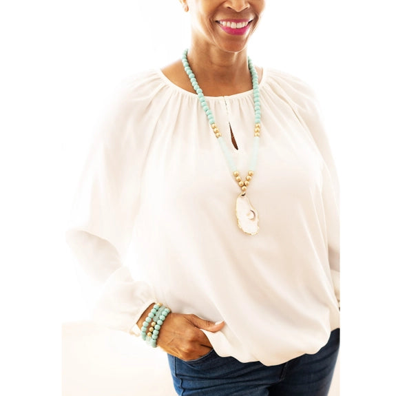 This bracelet stack will quickly become your go-to accessory, it features an eclectic set of beaded bracelets that will perfectly pair with your favorite outfits.