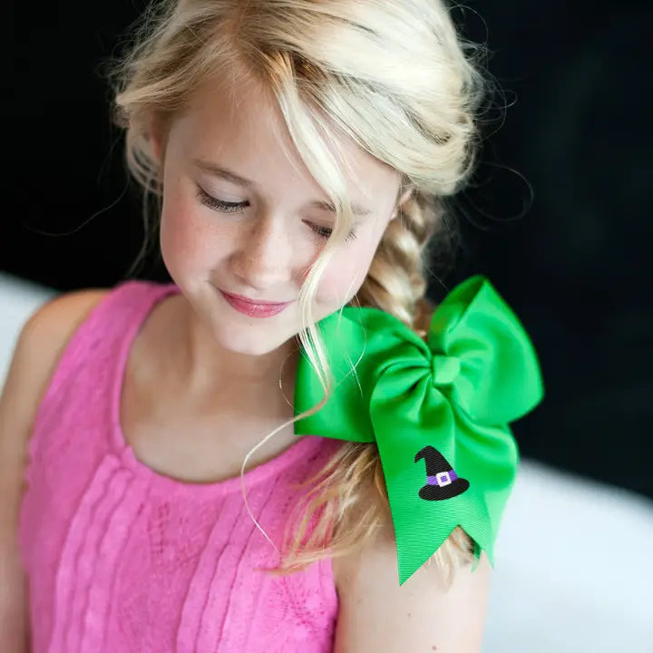 Viv & Lou Girls Witch Hat Green Hair Bow